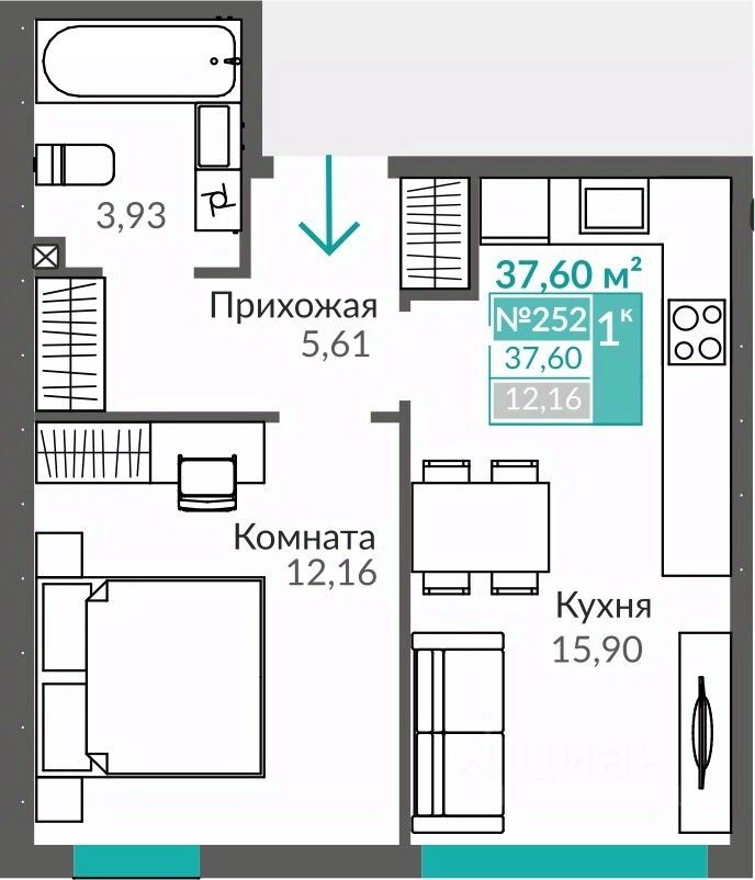 Продаётся 1-комнатная квартира в строящемся доме (С7), срок сдачи: III-кв. 2027, общей площадью 37.6 кв.м., на 1 этаже. Жилой квартал "Абрикос" - начало яркой истории жизни в прогрессивном районе Симферополя - Семья городских кварталов "Крымская Роза".