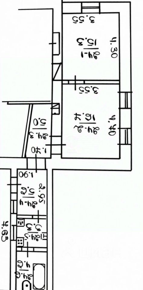 Планировка: зал — 16,7 м², спальня — 15,3 м².