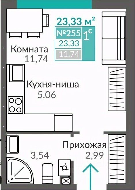 Продаётся 1-комнатная квартира в строящемся доме (С7), срок сдачи: III-кв. 2027, общей площадью 23.33 кв.м., на 1 этаже. Жилой квартал "Абрикос" - начало яркой истории жизни в прогрессивном районе Симферополя - Семья городских кварталов "Крымская Роза".