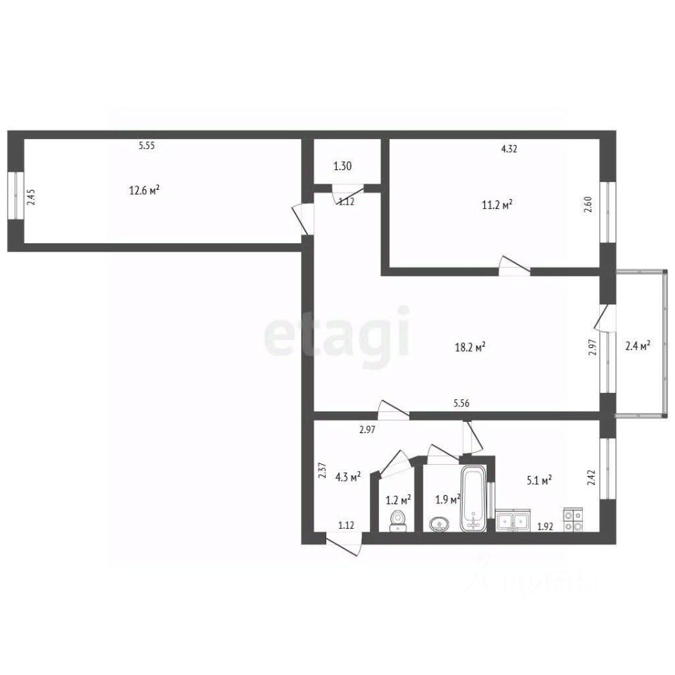 Площадь: 56.8 кв.м.