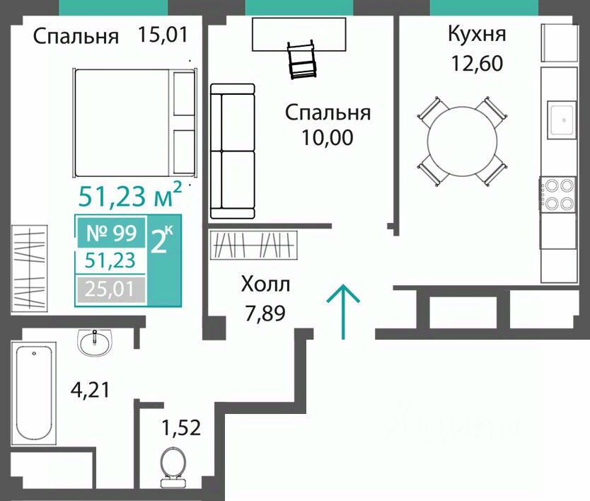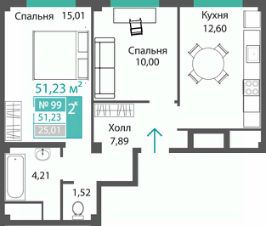 Продаётся 2-комнатная квартира в строящемся доме (ЭТАП 1, СЕКЦИИ А1, А2, А3), срок сдачи: III-кв. 2028, общей площадью 51.23 кв.м., на 1 этаже. Новый жилой комплекс "Семейный квартал ПРОПОЛИС" от застройщика "Монолит" расположен по адресу: Республика Крым, Симферопольский район, с. Мирное, ул. Учительская