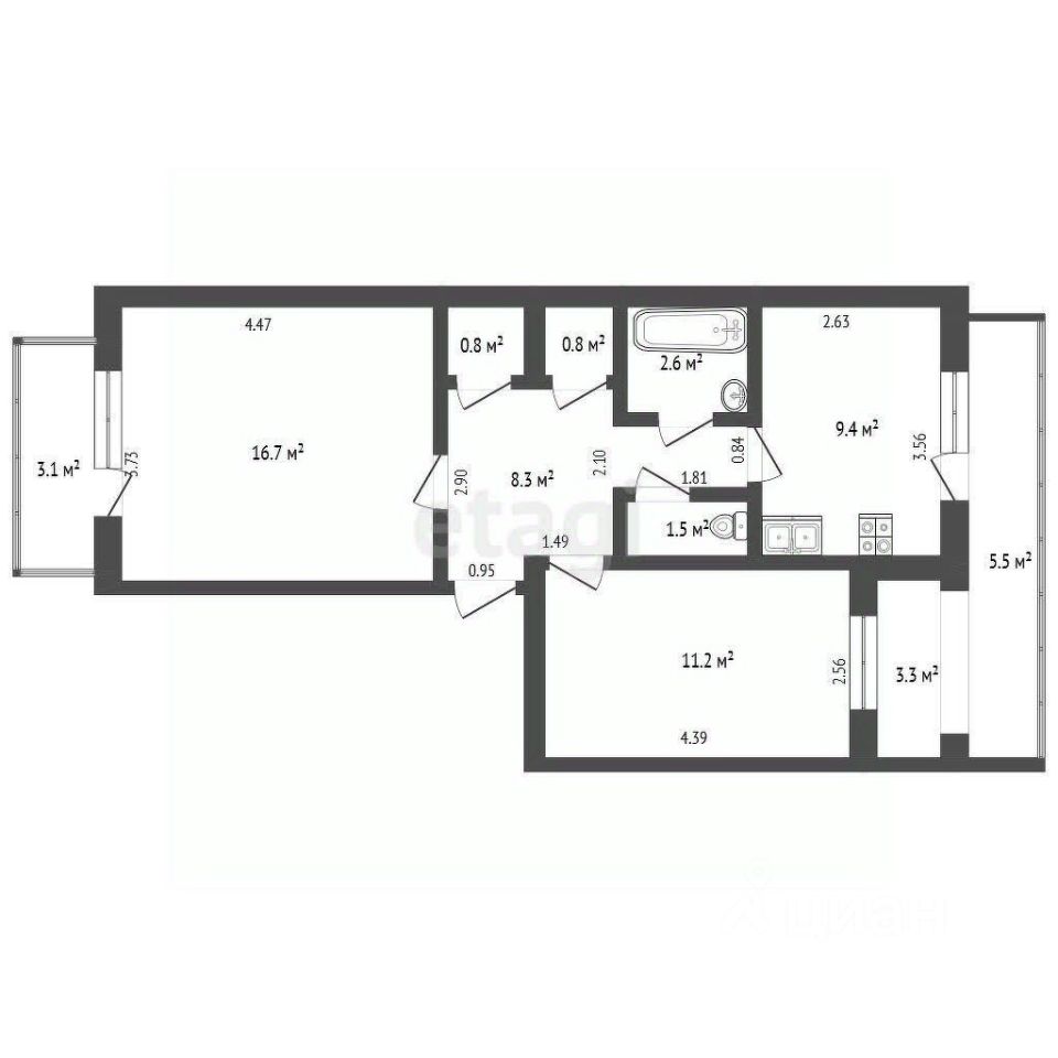 Комнаты: 16.7 кв.м. и 11.2 кв.м. - светлые и просторные.