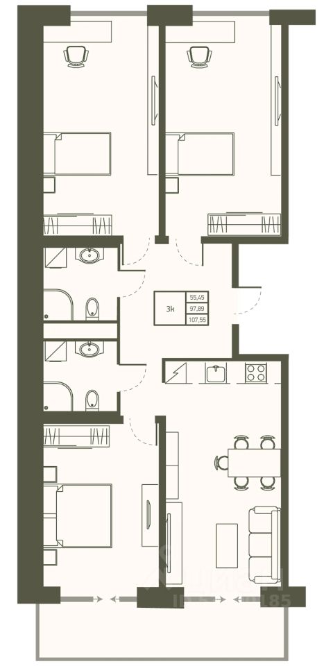 Продаётся 3-комнатная квартира в строящемся доме (Этап 1), срок сдачи: II-кв. 2028, общей площадью 107.55 кв.м., на 7 этаже. Новый жилой комплекс "Массандра Парк" от застройщика "Таврида Девелопмент" расположен по адресу:Республика Крым, городской округ Ялта, пгт. Массандра, ул. Мухина