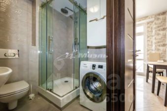 - санузел в кафеле, душевая кабина, встроенный унитаз,