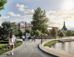 Площадь жилого комплекса 186га, на территории две школы, два детских сада, современный парк 6,69гас зонами отдыха для взрослых и детей, ландшафтный дизайн, свой аква- парк и торговый центр, поликлиника, храм, центр добрососедства, на первом этаже коммерческие помещения, что позволит жильцам не выходя из комплекса совершать покупки.