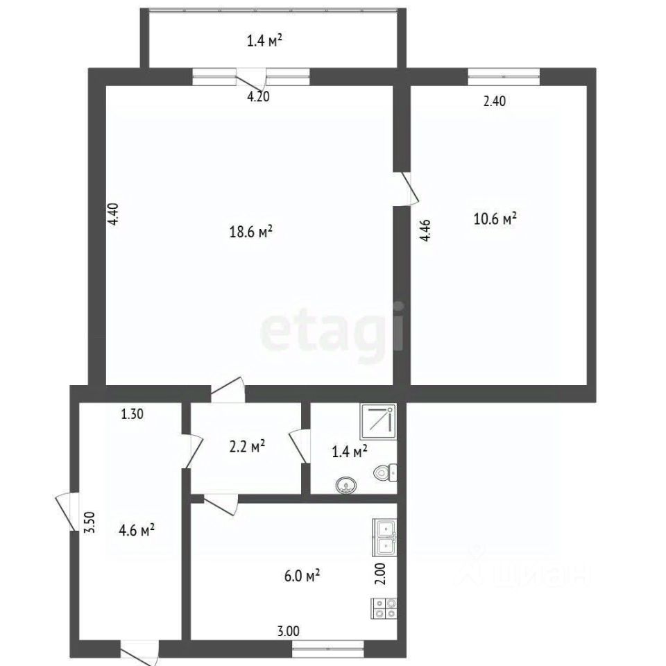 Планировка квартиры включает в себя две комнаты площадью 18.50 и 10.60 квадратных метров, а также коридор в 2.20 квадратных метра. Высота потолков 3.30 метра создаёт ощущение простора и свободы. Квартира не угловая, что делает её особенно тёплой и уютной, а также защищает от лишнего шума.