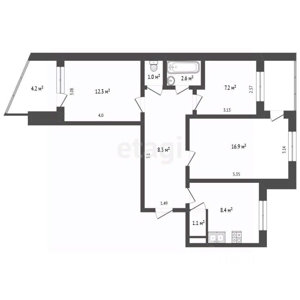 Пространство организовано рационально: три изолированные комнаты, раздельный санузел, кухня 8,4 кв.м, просторный коридор, а также лоджия и балкон.