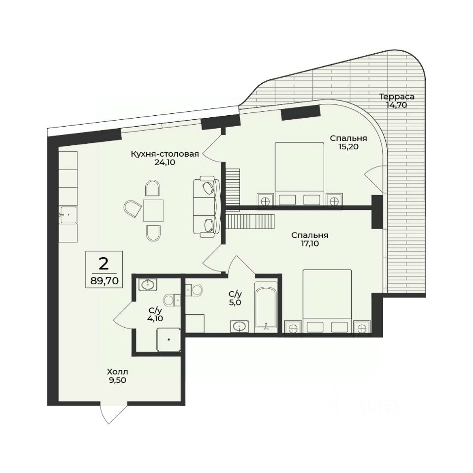 Продаётся 2-комнатная квартира в строящемся доме (Корпус 4), срок сдачи: III-кв. 2028, общей площадью 89.7 кв.м., на 6 этаже. Премиальный жилой комплекс "Нега" возводится в Профессорском уголке неподалёку от набережной, где снимался фильм "Кавказская пленница".