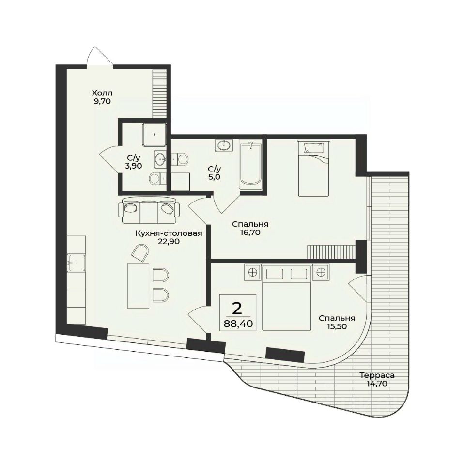Продаётся 2-комнатная квартира в строящемся доме (Корпус 4), срок сдачи: III-кв. 2028, общей площадью 88.4 кв.м., на 4 этаже. Премиальный жилой комплекс "Нега" возводится в Профессорском уголке неподалёку от набережной, где снимался фильм "Кавказская пленница".