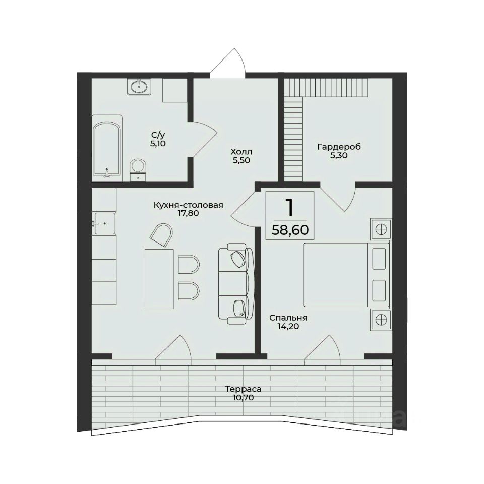 Продаётся 1-комнатная квартира в строящемся доме (Корпус 3), срок сдачи: III-кв. 2028, общей площадью 58.6 кв.м., на 6 этаже. Премиальный жилой комплекс "Нега" возводится в Профессорском уголке неподалёку от набережной, где снимался фильм "Кавказская пленница".