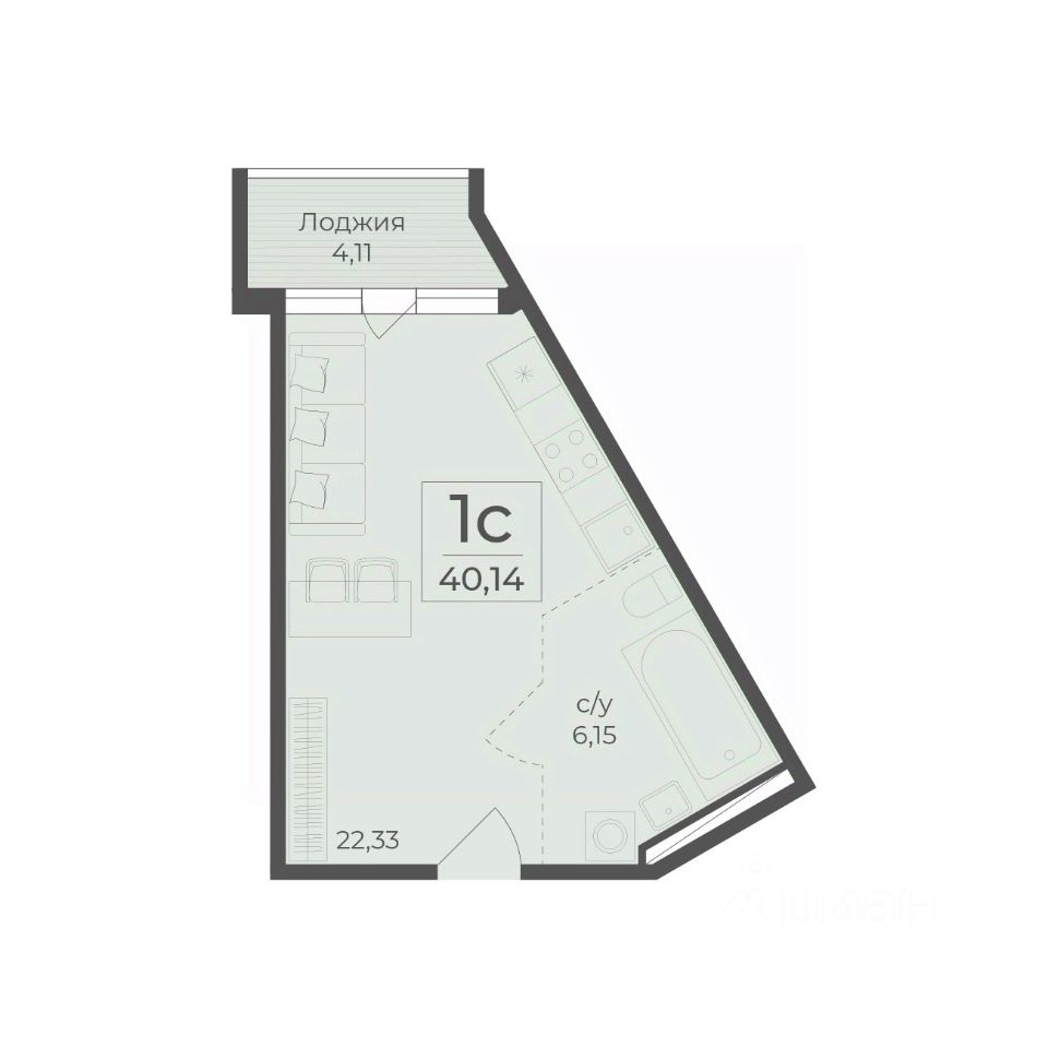Общая площадь40,14 м²