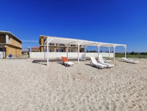 Комплекс функционирует с 2020 года, ухоженная территория с множеством хвойных насаждениями, выход прямо на песчаный пляж (100 метров от здания) который фактически используется только собственниками апартаментов и гостями комплекса. На территории есть парковка, зона барбекю, детская площадка, охраняемая, закрытая территория с контролем доступа. На территории в летний сезон работает кафе-ресторан, пиццерия. На пляже предусмотрены навесы и шезлонги.