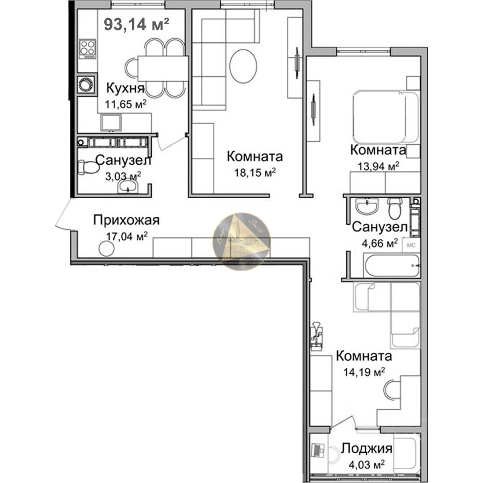 - Общая площадь квартиры 93.14 м2