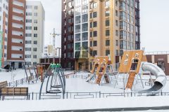 - На территории микрорайона оборудованы интерактивные детские площадки, футбольные и баскетбольные поля, зоны отдыха, прогулочные дорожки и площадка для выгула животных.