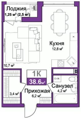 1-комн. квартира от застройщика с предчистовой отделкой в ЖМ "Город Мира" на 12 этаже. Общая площадь: 38.6 кв.м., жилая: 10.7 кв.м., площадь просторной кухни-столовой: 12.8 кв.м. Все окна выходят на одну сторону. В квартире одна лоджия, один совмещенный санузел. Высота потолков 2.7 м.