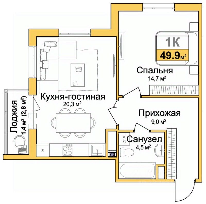 Просторная двухкомнатная квартира с европланировкой и предчистовой отделкой в ЖМ "Город Мира" на 14 этаже. Общая площадь: 49.9 кв.м., жилая: 25 кв.м., суммарная площадь гостиной-столовой с кухонной зоной: 20.3 кв.м. Европланировка, за счет большой площади кухни-гостиной квартира выглядит просторной и очень удобна для жизни. Угловая квартира, идеально подойдет любителям тишины и панорамных видов. В квартире одна лоджия, один совмещенный санузел. Высота потолков 2.7 м.