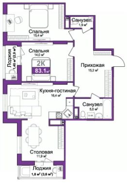 Общая площадь83,1 м²