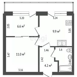 Квартира находится на втором этаже четырехэтажного дома, в ста метрах от нового жилого комплекса "5 элемент". Квартира отличается выгодной планировкой: изолированные комнаты, просторная кухня площадью 10 квадратных метров и большой застекленный балкон.