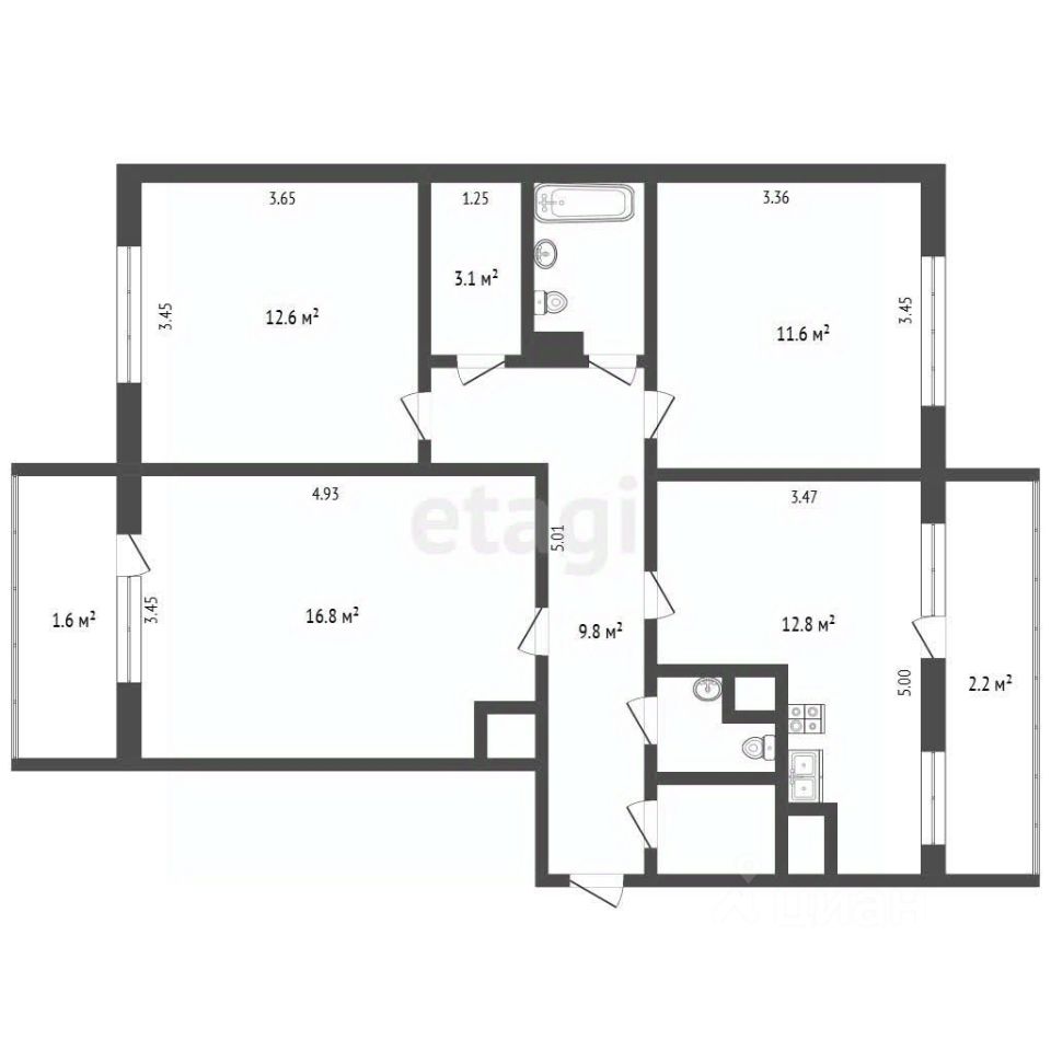 Практичность планировки подчеркивается наличием отдельной постирочной комнаты для размещения бытовой техники и удобным санузлом при входе.