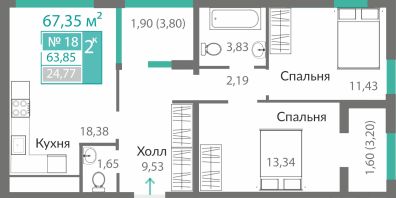 Продаётся 2-комнатная квартира в строящемся доме (9 этап (Секция Б9.2)), срок сдачи: I-кв. 2027, общей площадью 63.85 кв.м., на 3 этаже. ОТКРЫВАЕМ НОВЫЕ ГОРИЗОНТЫ