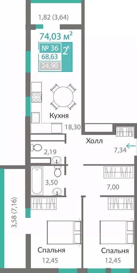 Продаётся 2-комнатная квартира в строящемся доме (9 этап (Секция Б9.2)), срок сдачи: I-кв. 2027, общей площадью 68.63 кв.м., на 6 этаже. ОТКРЫВАЕМ НОВЫЕ ГОРИЗОНТЫ