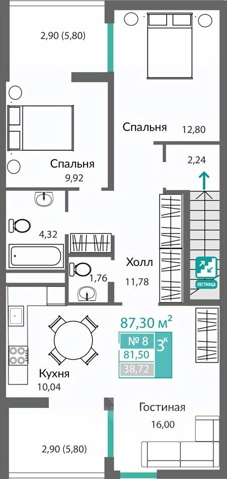 Продаётся 3-комнатная квартира в строящемся доме (9 этап (Секция Б9.2)), срок сдачи: I-кв. 2027, общей площадью 81.5 кв.м., на 2 этаже. ОТКРЫВАЕМ НОВЫЕ ГОРИЗОНТЫ