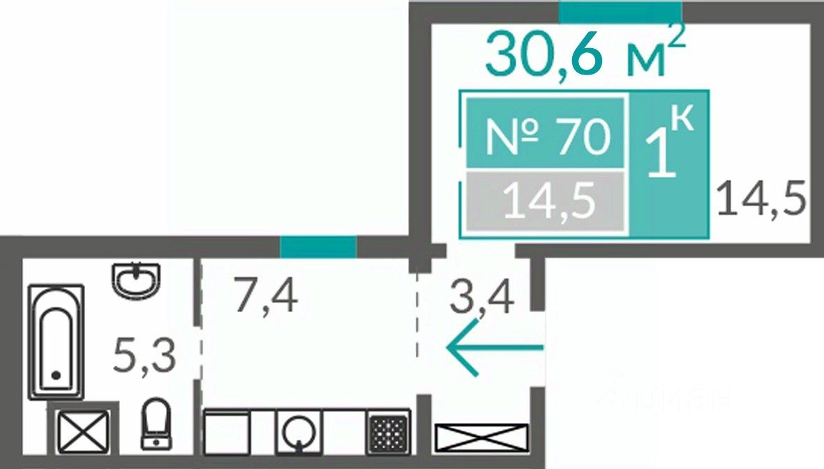 Общая площадь30,6 м²