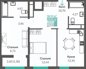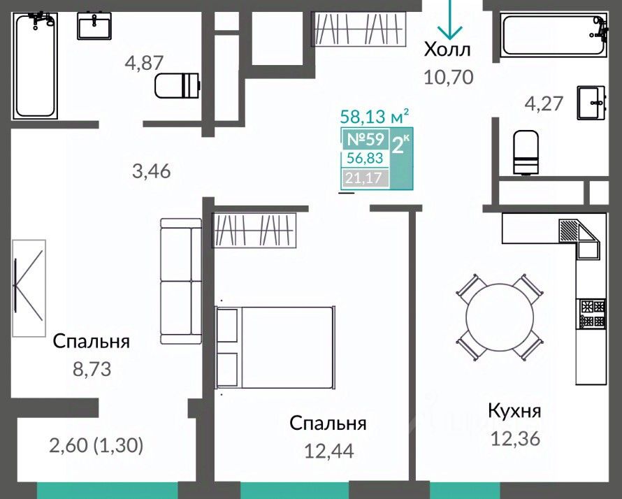 Продаётся 2-комнатная квартира в строящемся доме (Корпус 2), срок сдачи: I-кв. 2026, общей площадью 58.13 кв.м., на 9 этаже. Новый жилой комплекс "Шалфей" от застройщика "Монолит" расположен по адресу: Россия, Республика Крым, Симферополь, проспект Александра Суворова