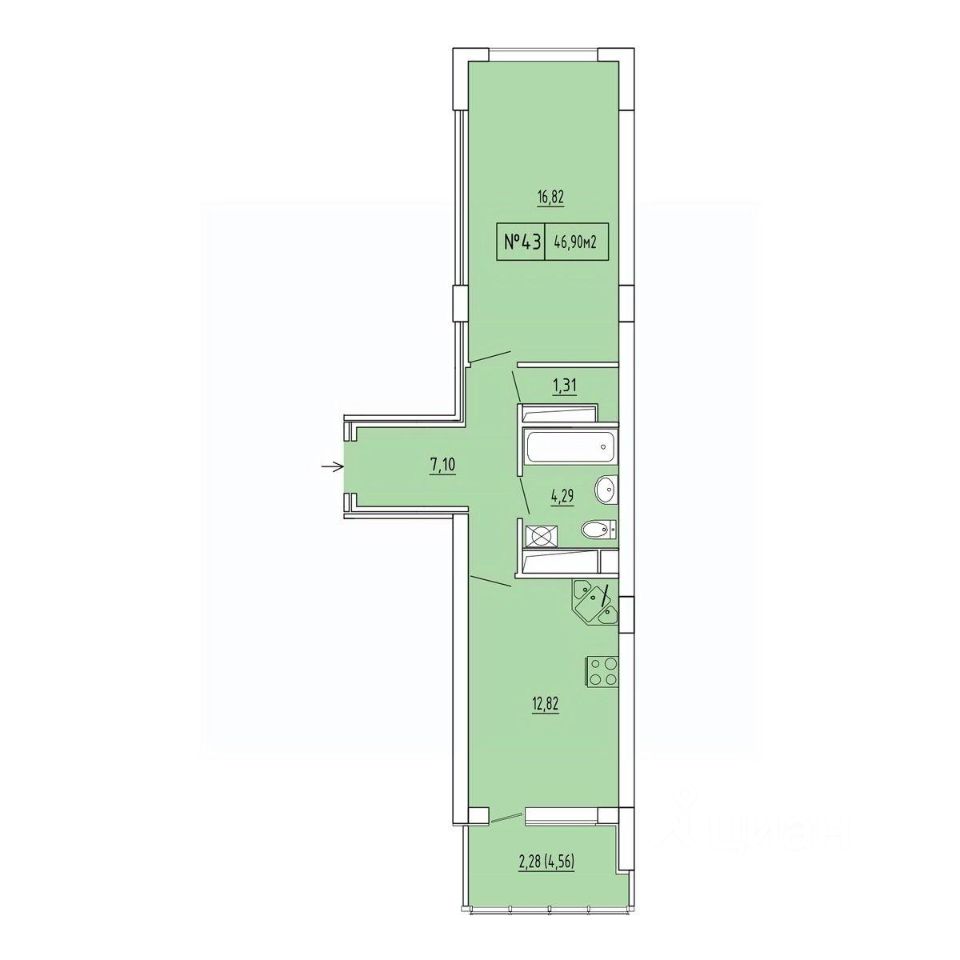 Продается 1-комн. квартира, 44,62 м²