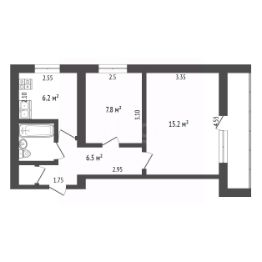 - площадь комнат: 7,8/ 15,2 кв.м.