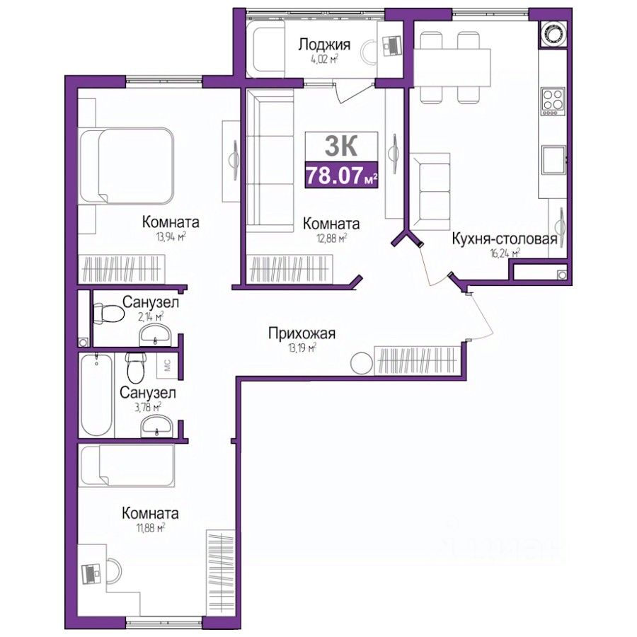 3. Рассрочка от застройщика - до июня 2028 года! Первоначальный взнос от 30%.