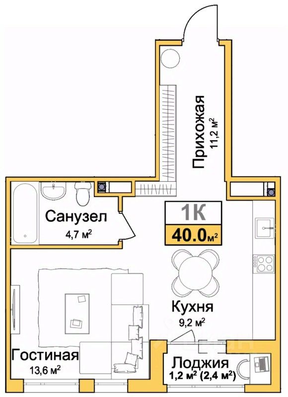 Продается 1-комн. квартира с предчистовой отделкой в ЖМ "Город Мира" на 8 этаже. Общая площадь: 40 кв.м., жилая: 13.6 кв.м., площадь просторной кухни-столовой: 9.2 кв.м. Все окна выходят на одну сторону. В квартире одна лоджия, один совмещенный санузел. Высота потолков 2.7 м.