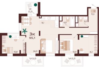 Продаётся 3-комнатная квартира в строящемся доме (Корпус 5), срок сдачи: II-кв. 2027, общей площадью 95.1 кв.м., на 3 этаже. Жилой комплекс бизнес-класса "РОЯЛТА" от застройщика "ГК ТОЧНО" в городе Ялта Республики Крым на улице Спендиарова.