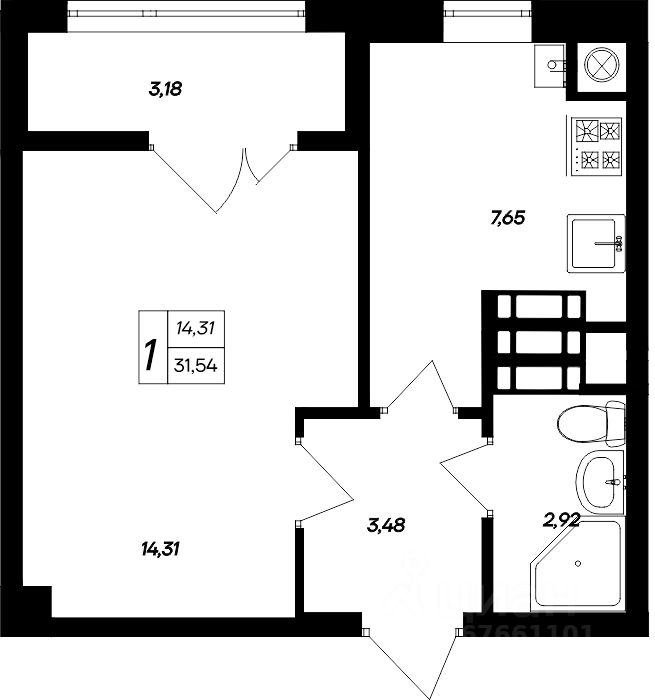 Общая площадь31,54 м²