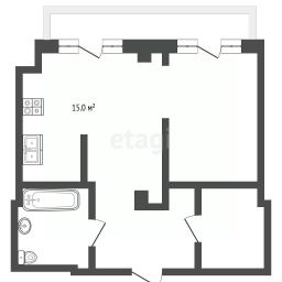 Рациональная планировка: светлая гостиная с кухонной зоной и уединённая спальня.