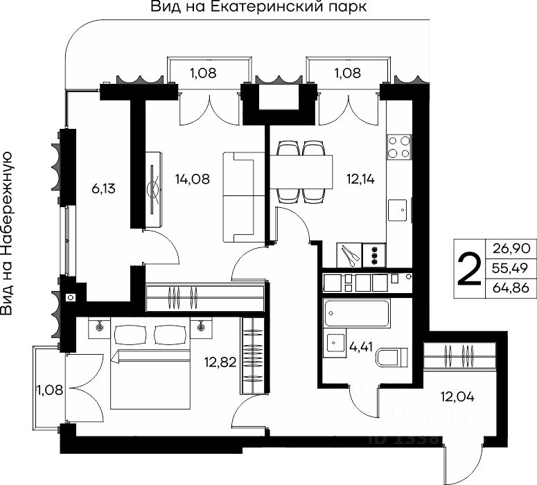 Продаётся 2-комнатная квартира в строящемся доме (Столица), срок сдачи: II-кв. 2029, общей площадью 64.86 кв.м., на 4 этаже. Новый клубный дом "Столица" от застройщика "ИнтерСтрой" расположен по адресу: Республика Крым, Симферополь, улица Набережная имени 60-летия СССР, 28А