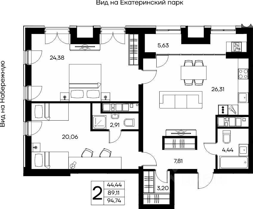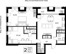 Продаётся 2-комнатная квартира в строящемся доме (Столица), срок сдачи: II-кв. 2029, общей площадью 94.74 кв.м., на 13 этаже. Новый клубный дом "Столица" от застройщика "ИнтерСтрой" расположен по адресу: Республика Крым, Симферополь, улица Набережная имени 60-летия СССР, 28А