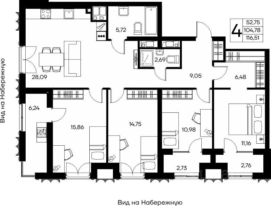 Продаётся 4-комнатная квартира в строящемся доме (Столица), срок сдачи: II-кв. 2029, общей площадью 116.51 кв.м., на 13 этаже. Новый клубный дом "Столица" от застройщика "ИнтерСтрой" расположен по адресу: Республика Крым, Симферополь, улица Набережная имени 60-летия СССР, 28А