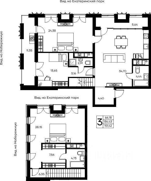 Продаётся 3-комнатная квартира в строящемся доме (Столица), срок сдачи: II-кв. 2029, общей площадью 151.42 кв.м., на 11 этаже. Новый клубный дом "Столица" от застройщика "ИнтерСтрой" расположен по адресу: Республика Крым, Симферополь, улица Набережная имени 60-летия СССР, 28А
