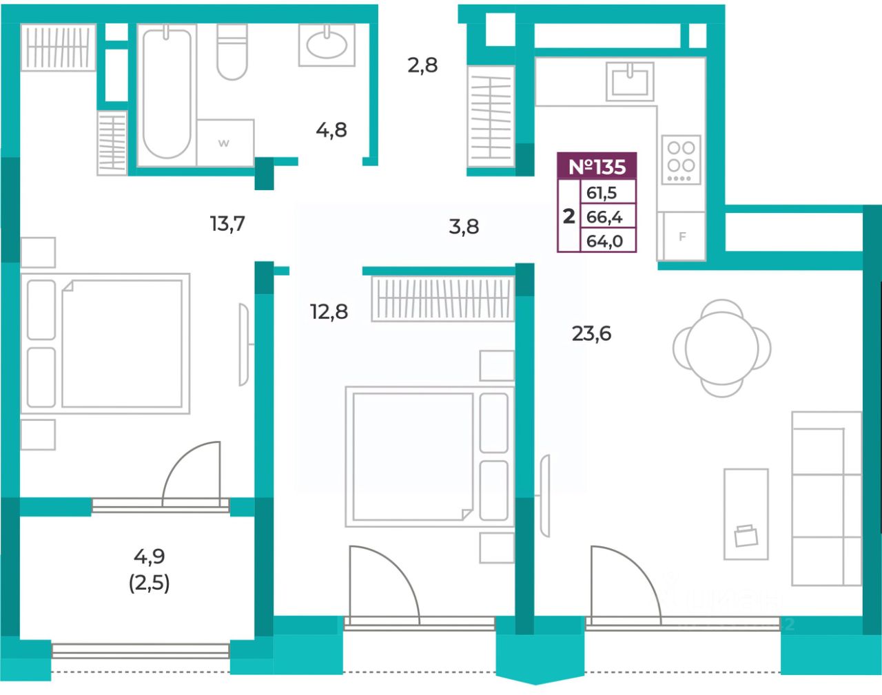 Общая площадь64 м²