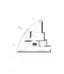 Однокомнатные апартаменты площадью 54.32 кв.м.