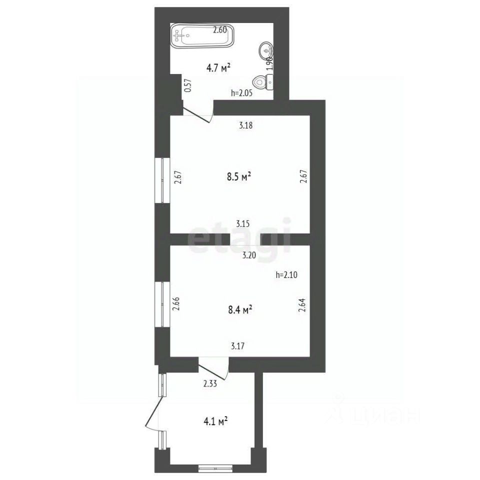 Квартира представлена входной группой, двумя жилыми комнатами и совмещенным санузлом, расположена на первом этаже двухэтажного дома. В квартире выполнена предчистовая отделка, в санузле вся необходимая сантехника и стиральная машинка.
