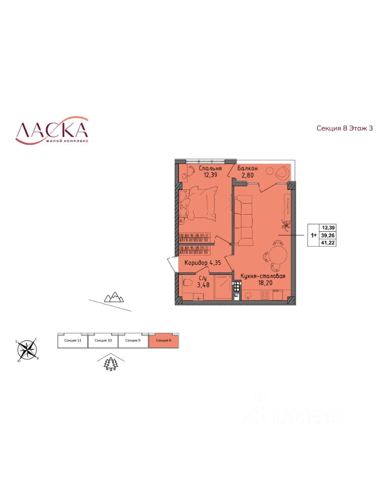 Общая площадь39,26 м²