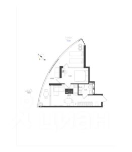 Однокомнатные апартаменты площадью 50.99 кв.м.