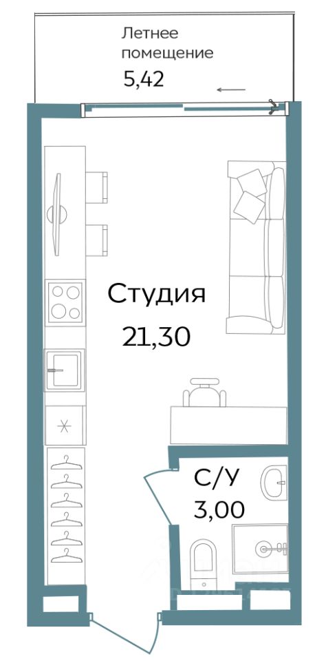 Общая площадь29,72 м²