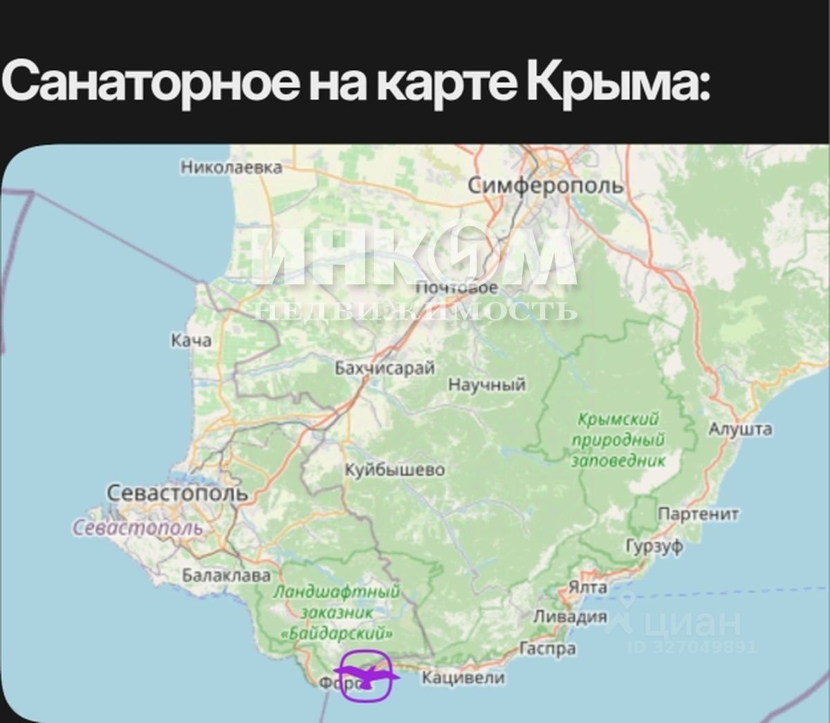 До ближайшей остановки автобуса 15 мин. До развлекательного комплекса Мрия -10 мин., до г. Ялта - 30 мин., до Севастополя -30 мин. на авто.