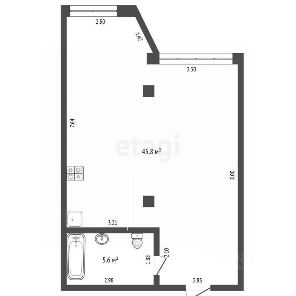 Квартира расположена на 3 этаже 7-этажного здания. Общая площадь 51,4 кв.м. Благодаря свободной планировке в квартире выполнено разделение пространства на 2 комнаты, просторную кухню, санузел, гардеробную, прихожую. В квартире панорамное остекление и французские балконы. Парковочные места на территории комплекса.