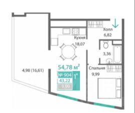 Эксклюзивная квартира в новом жилом комплексе Барбарис с собственной террасой 16,5 кв.м. Всего 2 таких квартиры в доме!