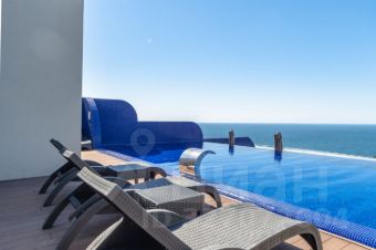 Этажом ниже пентхауса расположен панорамный бассейн-инфинити с террасой для загара и баней;