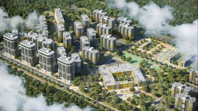 На территории района расположится всё необходимое для комфортной жизни магазины, кафе, школа и детские сады, спортивные площадки и многое другое.